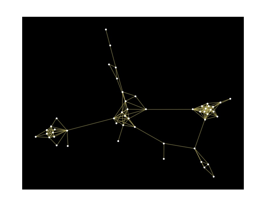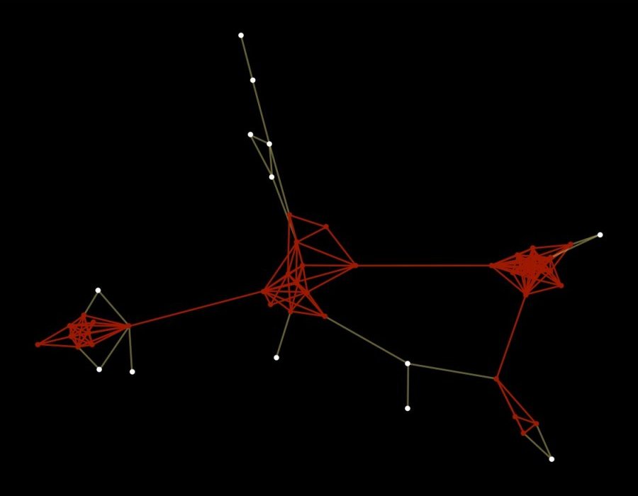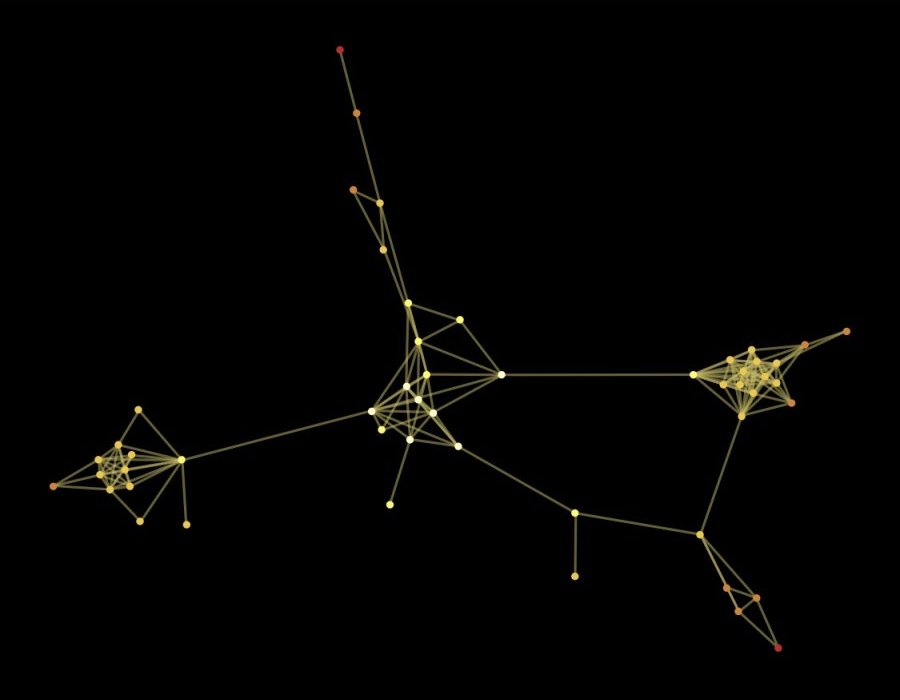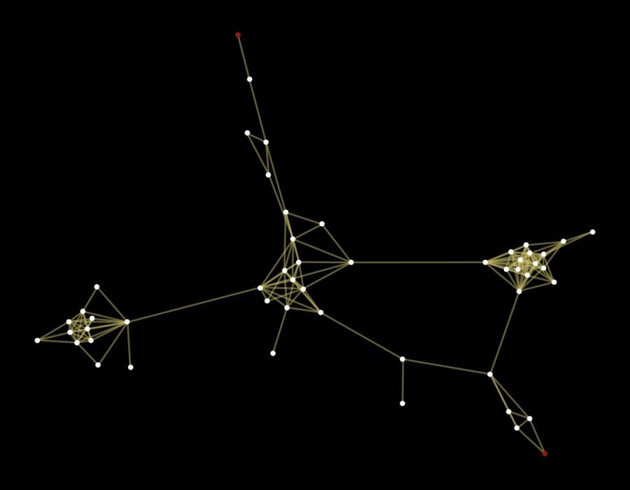 Un réseau social peut être représenté par un graphe. Chaque point du graphe correspond à un contact et les liens entre les points font apparaître les relations qu’ils entretiennent.