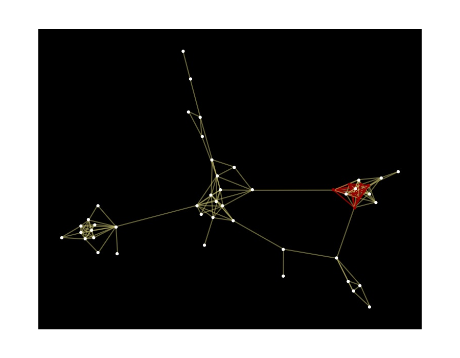 Un composant cœur K est un sous-graphe minimalement connecté dans lequel tous les sommets ont au moins un degré K. Ces composants correspondent à des groupes d’acteurs dans les réseaux sociaux.
