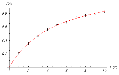 | I (A) | 0.00 | 0.21 | 0.36 | 0.47 | 0.56 | 0.62 | 0.68 | 0.72 | 0.78 | 0.80 | 0.83 |