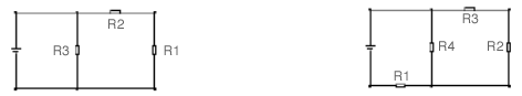 - Exprimez la résistance équivalente de chacun des circuits ci-dessous.