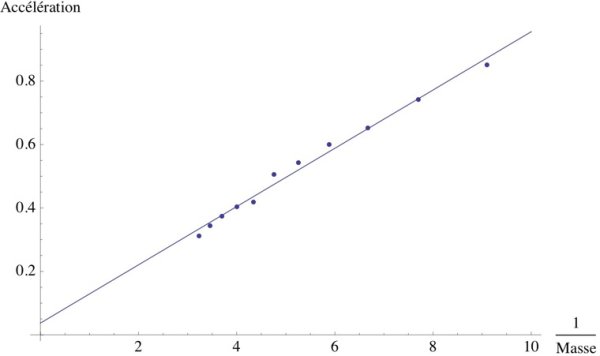 masse $\Delta$m = |m2 - m1|. - Représenter graphiquement $a$ en fonction de $\frac{1}{m_{T}}$