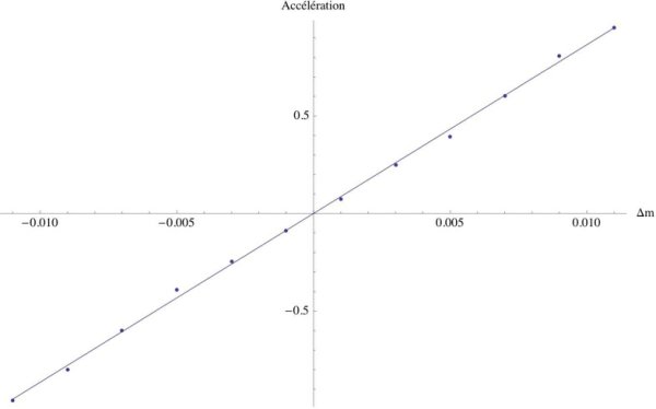 Si l’écart de masse reste constant et que la masse totale augmente, l’accélération dimminue.