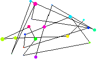 La primitive graphique « Point » permet de dessiner des points. – Dessinez une collection de points du plan de taille et de couleur différentes.
