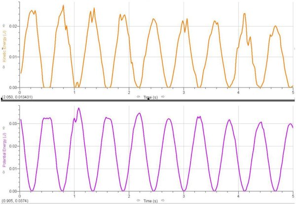 Si le système ne subit pas d’autres forces, alors le principe de conservation de l’énergie nous dit que la somme $\Delta E_c_i_n + \Delta E_e_l_a_s_t_i_c = 0$, ce que nous pouvons tester expérimentalement.