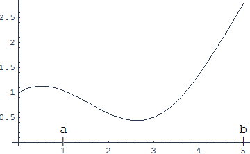 La base supérieure du rectangle doit donc couper la courbe entre a et b.