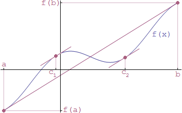 $\Rightarrow ~; f(c)(b - a) = \int_a^b f(x)dx$ pour au moins un point $c$ de [a ; b].