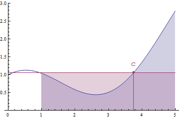 Ces deux aires sont égales et c est un point situé entre a et b.