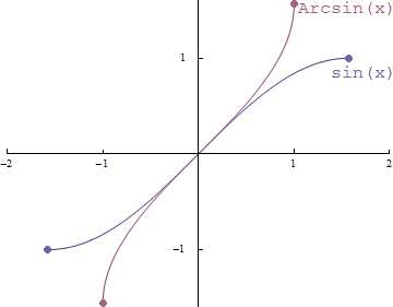 $\begin{eqnarray*} Arcsin : [-1 ; 1] & \rightarrow & \left[-\frac{\pi}{2} ; \frac{\pi}{2}\right] \\ x & \mapsto & Arcsin(x) \end{eqnarray*}$