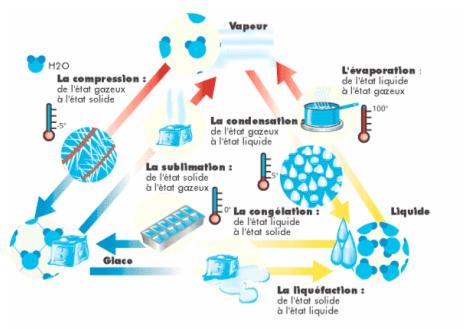 | 6 | Gaz -> Solide | condensation | gaz carbonique comprimé = neige |