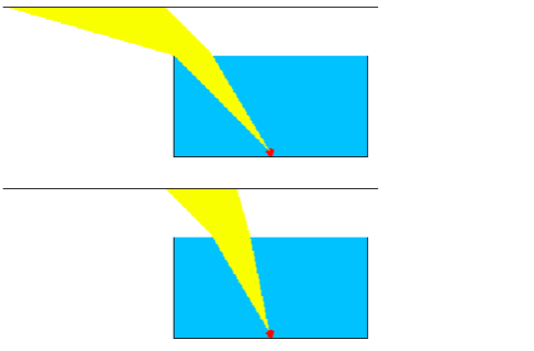 2. Une source lumineuse qui se trouve au fond d’un bac rempli d’eau (n = 1.333) émet un pinceau lumineux.