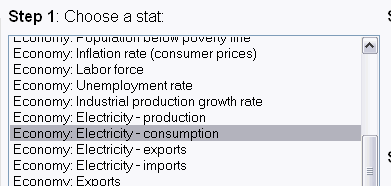 puis sous "Step 1" sélectionner le sujet des données que vous voulez comparer par exemple "Economy : Electricity-consumption"