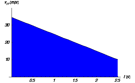 – examiner les aires comprises entre les horaires de la vitesse selon Oy et l’axe temporel pour ce temps t (en comptant positivement l’aire située au-dessus de l’axe et négativement celle située au-dessous).