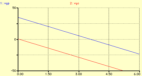 Horaires des vitesses selon Oy du projectile (en bleu) et de la cible (en rouge)